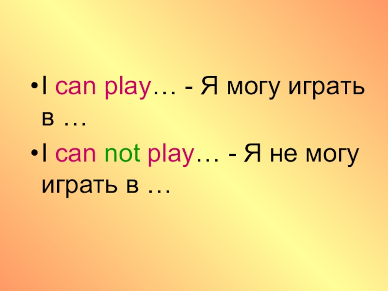 I can play… - Я могу играть в …I can not play… - Я не могу играть