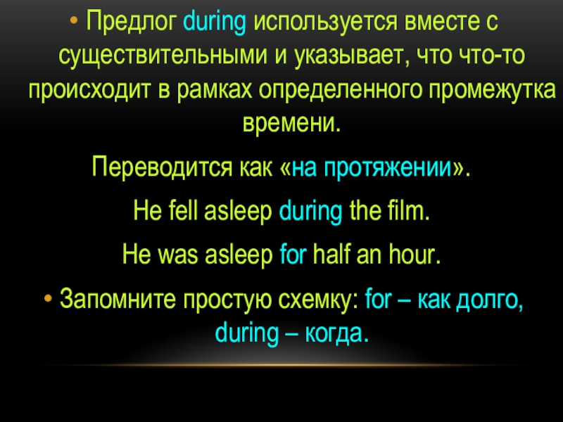 для выражения продолжительности действия, события и переводится как «в течение, в продолжение».