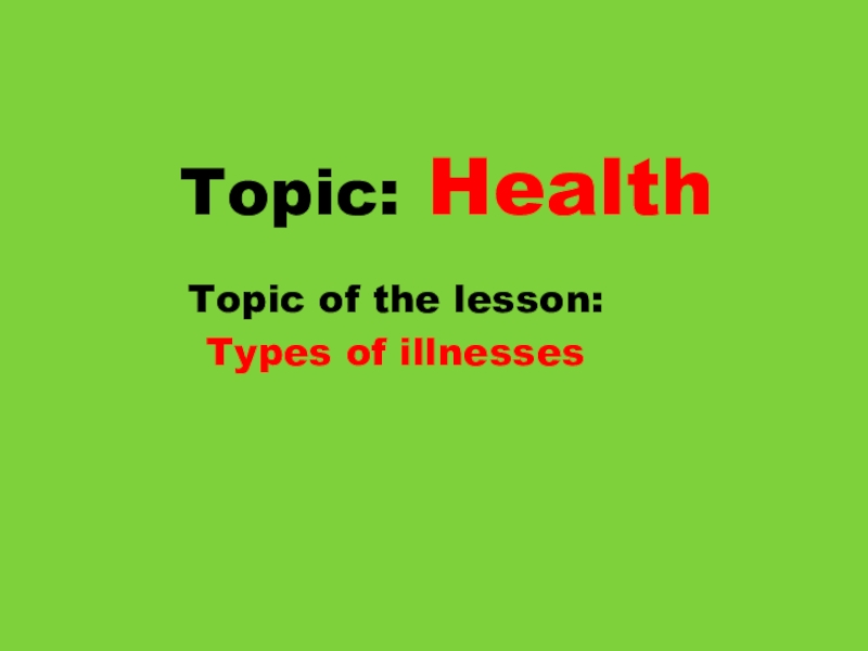Topic: HealthTopic of the lesson: Types of illnesses