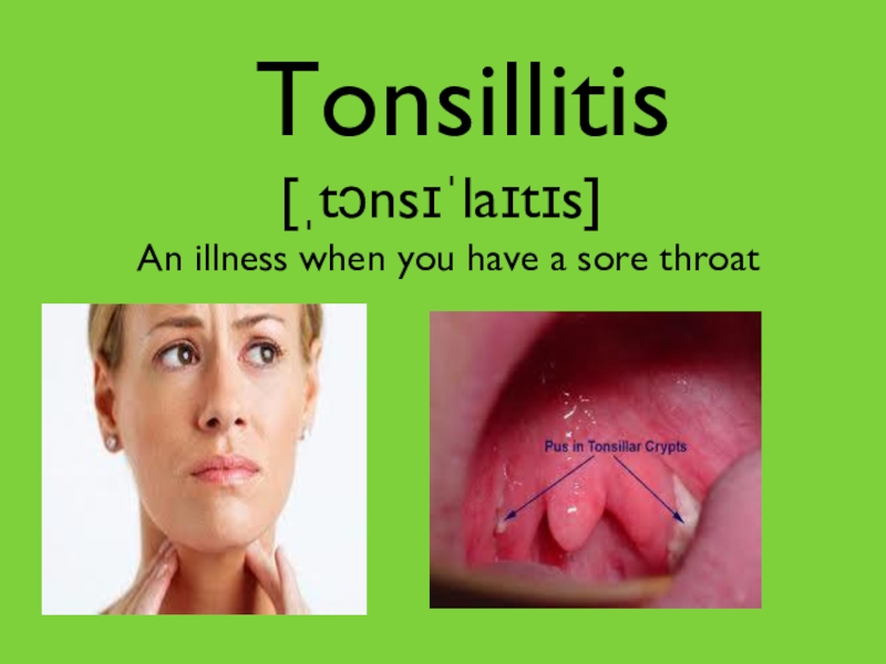 Tonsillitis        [ˌtɔnsɪˈlaɪtɪs]     An illness when you