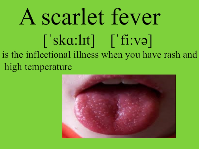 A scarlet fever      [ˈskɑ:lɪt]  [ˈfi:və] is the inflectional illness