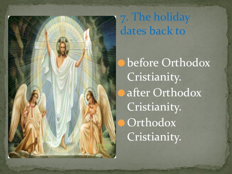 7. The holiday dates back tobefore Orthodox Cristianity.after Orthodox Cristianity.Orthodox Cristianity.