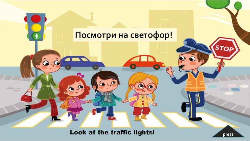 pressПосмотри на светофор!Look at the traffic lights!