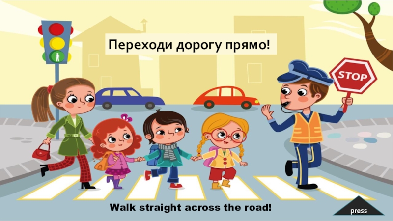 pressПереходи дорогу прямо!Walk straight across the road!