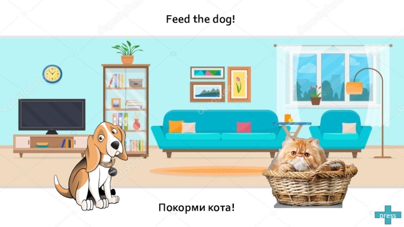 Покорми кота!Feed the dog!press