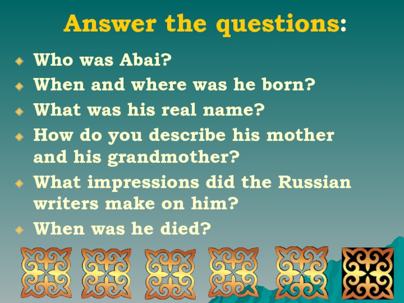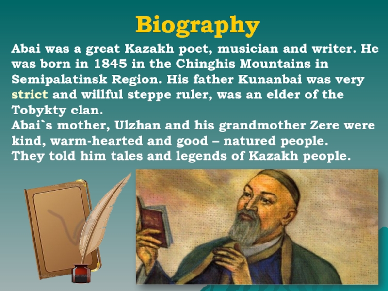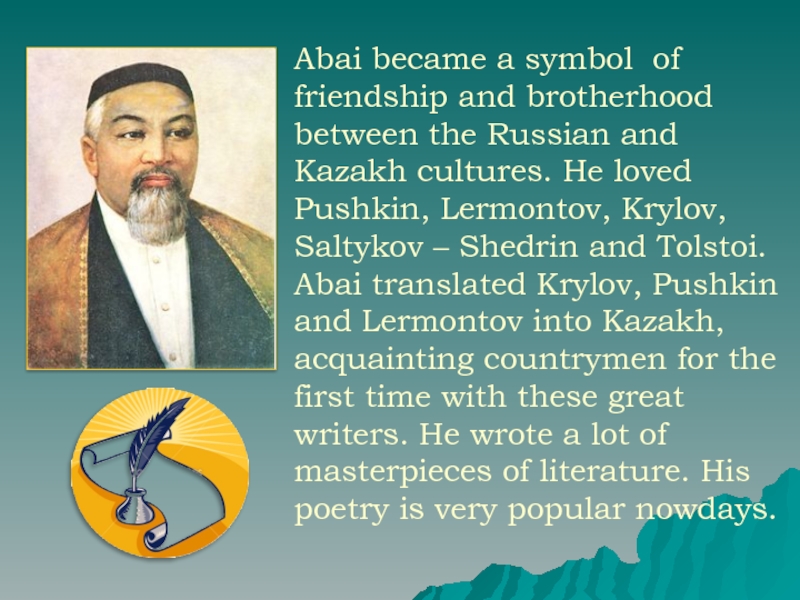 The glory of Abai, the real founder of modern Kazakh culture and the greatest Kazakh classical poet, shall never dim.