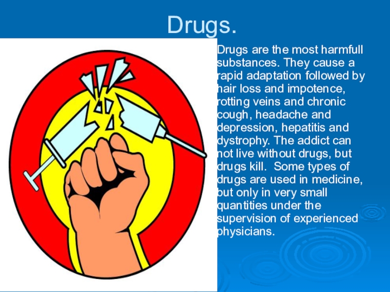 Слайд 6Drugs.