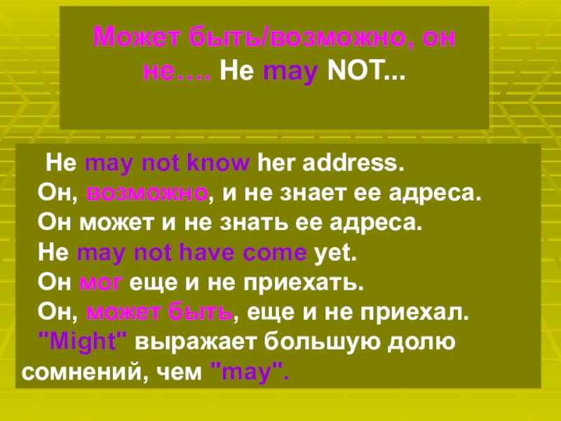 Слайд 30Может быть/возможно, он не…. Не may NOT...
