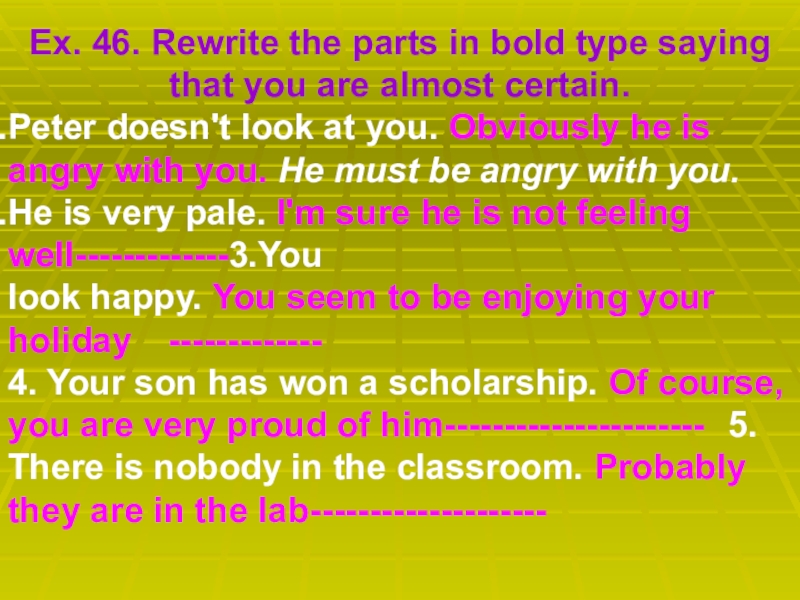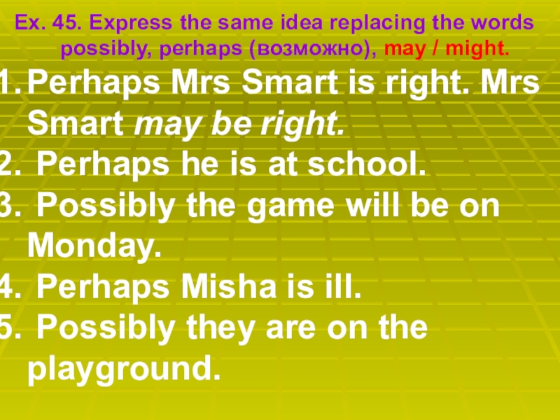 Слайд 32Ex. 45. Express the same idea replacing the words possibly, perhaps