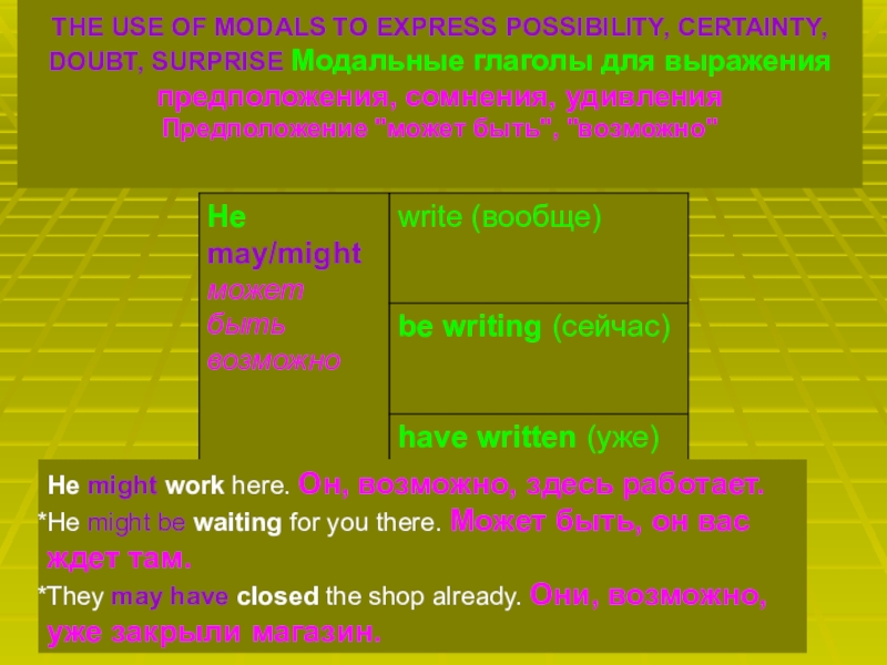 Слайд 29THE USE OF MODALS TO EXPRESS POSSIBILITY, CERTAINTY, DOUBT, SURPRISE Модальные