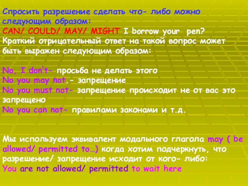 Слайд 9Спросить разрешение сделать что- либо можно следующим образом: