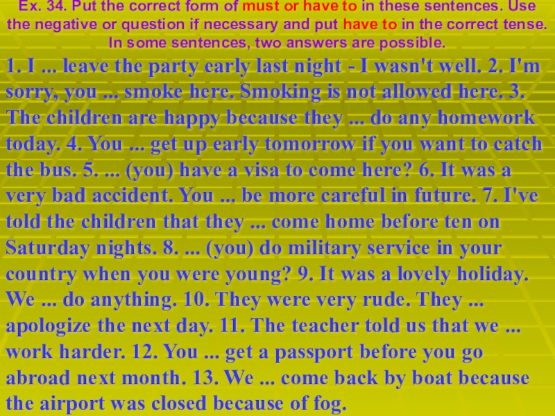 Слайд 13have to - вынужден, придется (в связи с обстоятельствами):