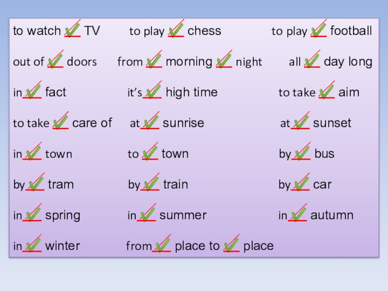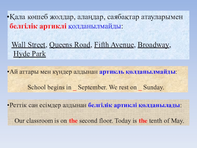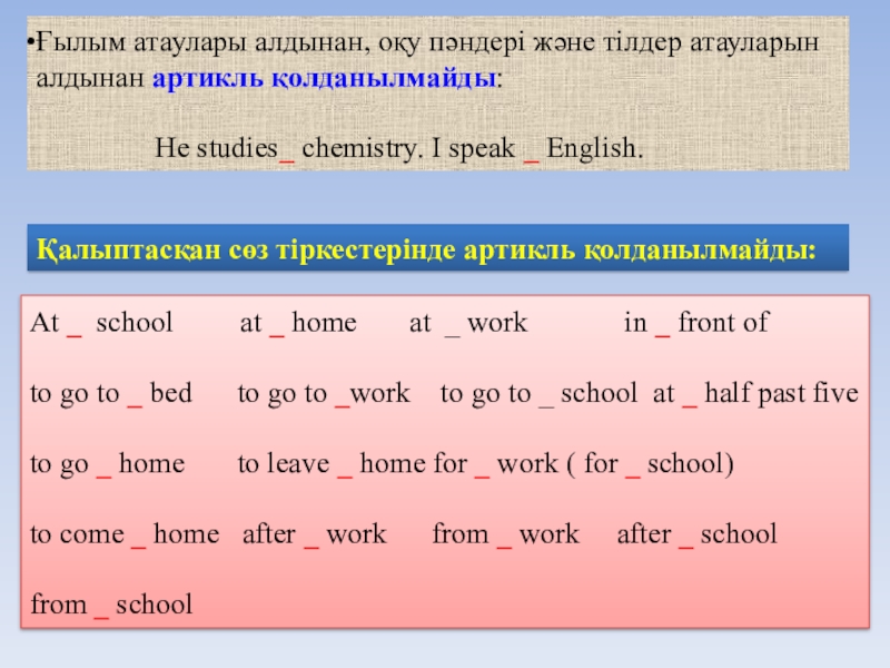 Қалыптасқан сөз тіркестерінде артикль қолданылмайды: