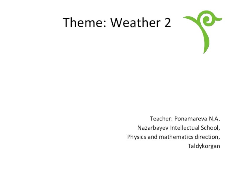 Theme: Weather 2Teacher: Ponamareva N.A.Nazarbayev Intellectual School,Physics and mathematics direction,Taldykorgan