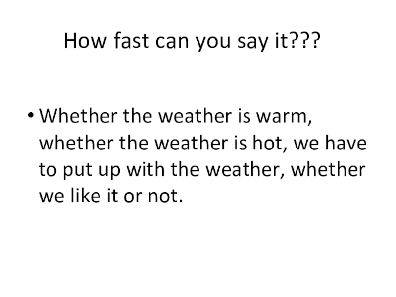 How fast can you say it???Whether the weather is warm, whether the weather is hot, we have to put up with the weather, whether we like it or not.