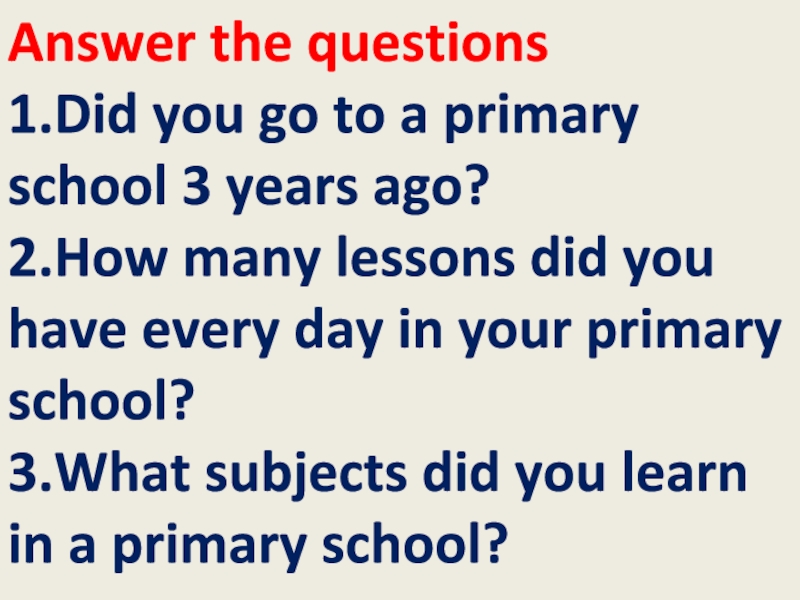 Answer the questions1.Did you go to a primary school 3 years ago?2.How many lessons did you have