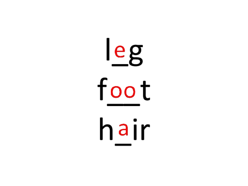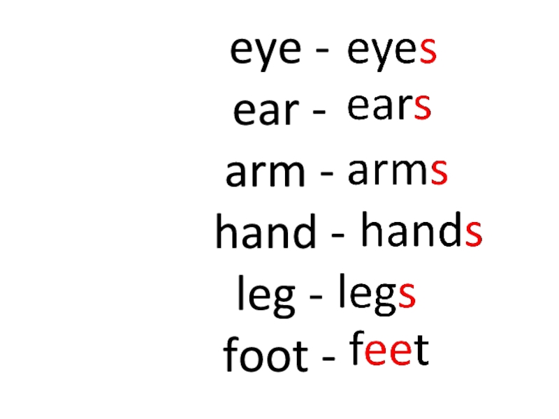 Слайд 19eye - ear - arm - hand - leg - foot -