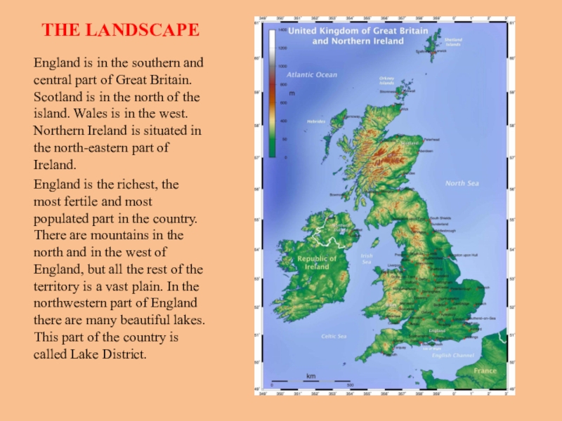 The United Kingdom of Great Britain and Northern Ireland covers an area of some 244 thousand square miles. It is situated on the British Isles. The British Isles are separated from Europe by the Strait of Dover and the English Channel. The British Isles are washed by the North Sea in the east and the Atlantic Ocean in the west.