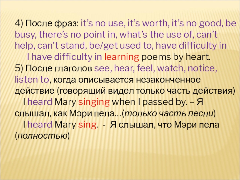 Слайд 64) После фраз: it’s no use, it’s worth, it’s no good,