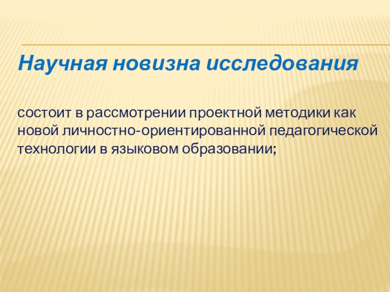 состоит в рассмотрении проектной методики как новой личностно-ориентированной педагогической