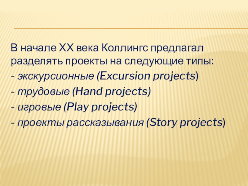 Слайд 9В начале ХХ века Коллингс предлагал разделять проекты на следующие типы: