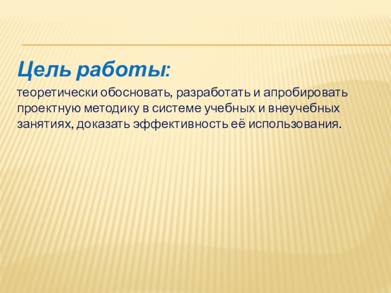 теоретически обосновать, разработать и апробировать проектную методику в системе
