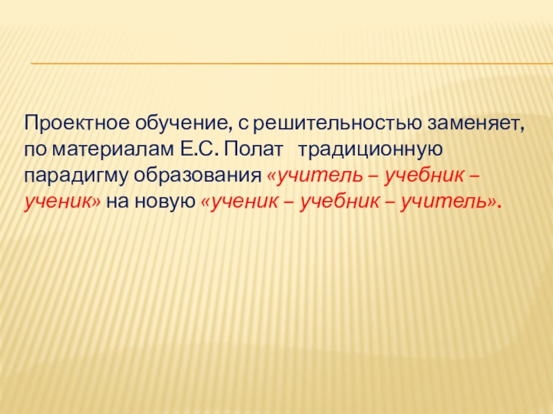 Слайд 14Проектное обучение, с решительностью заменяет, по материалам Е.С. Полат традиционную