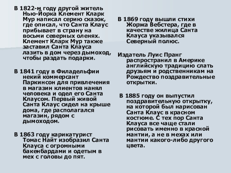В 1869 году вышли стихи Жоржа Вебстера, где в качестве жилица Санта Клауса указывался Северный полюс.