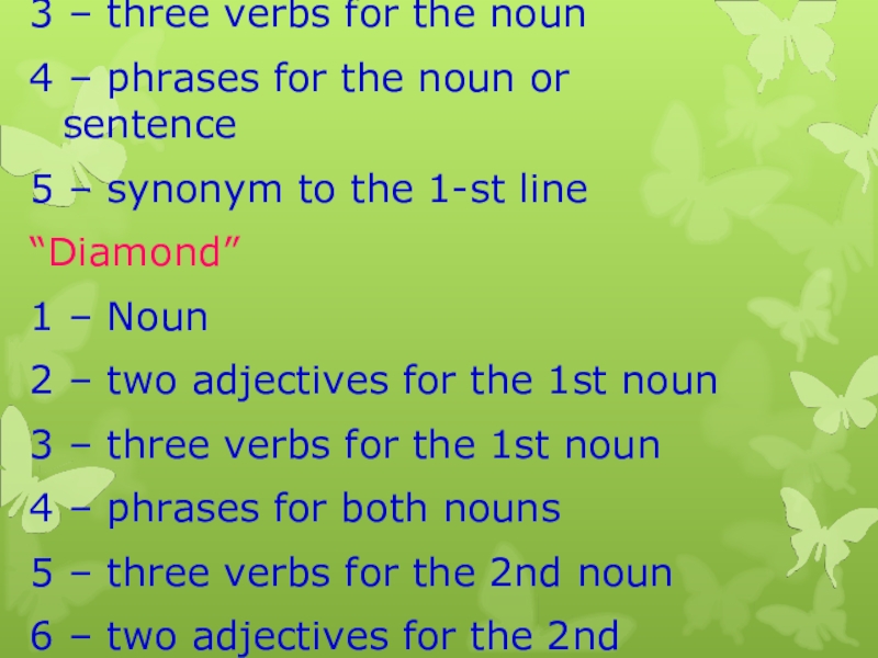 “Cinquain”1 – Noun2 – two adjectives for the noun3 – three verbs for the noun4 – phrases