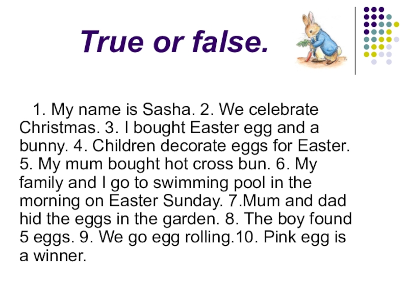 -Yes! I paint eggs and my mum cooks a lot of tasty food.