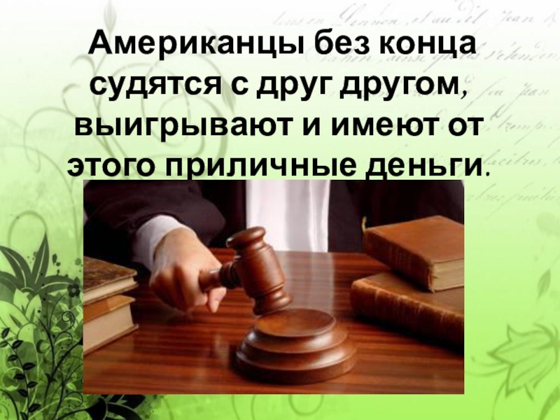 Слайд 6 Американцы без конца судятся с друг другом, выигрывают и имеют от