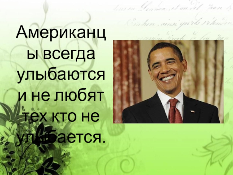 Слайд 3Американцы всегда улыбаются и не любят тех кто не улыбается.