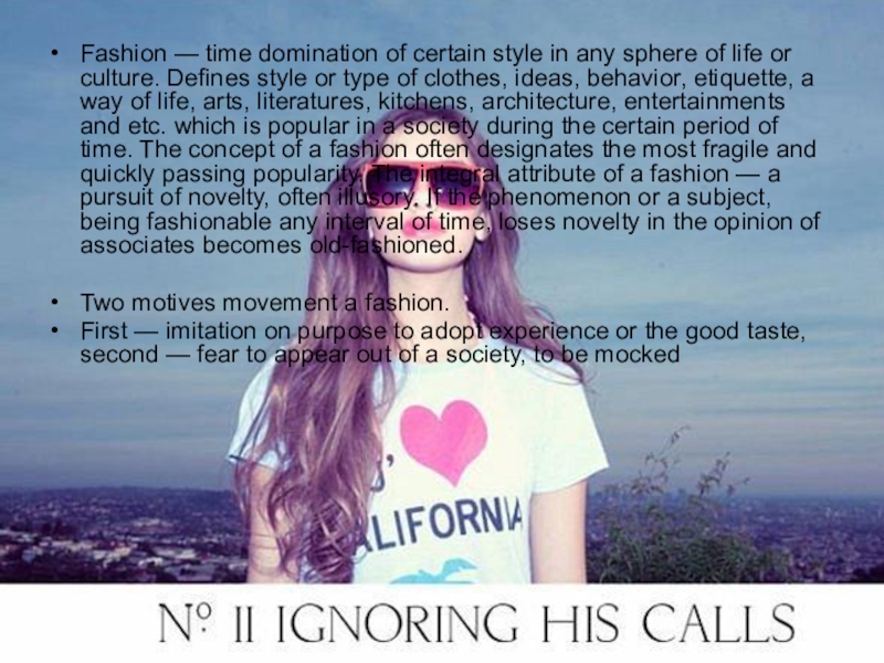 Слайд 2Fashion — time domination of certain style in any sphere of