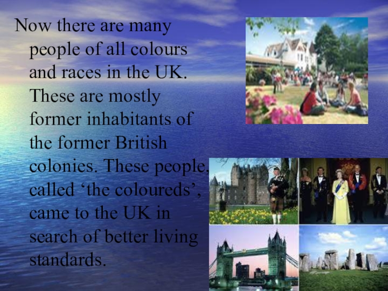 the UK. These are mostly former inhabitants of the former British colonies. These people, called ‘the coloureds’, came to the UK in search of better living standards.