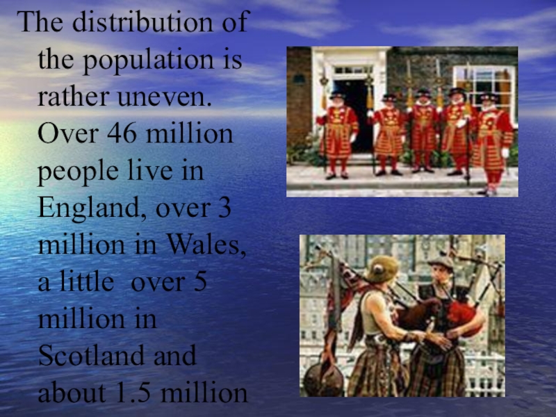 The distribution of the population is rather uneven. Over 46 million people live in England, over 3
