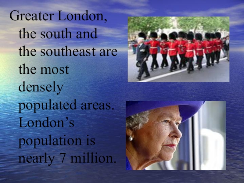 Greater London, the south and the southeast are the most densely populated areas. London’s population is nearly