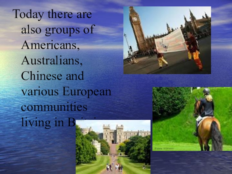 Today there are also groups of Americans, Australians, Chinese and various European communities living in Britain.