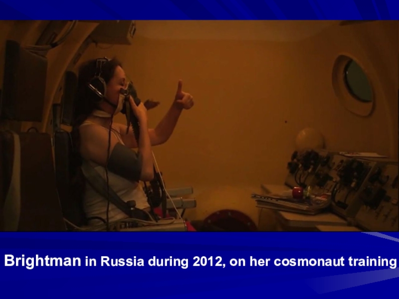 Слайд 27Brightman in Russia during 2012, on her cosmonaut training