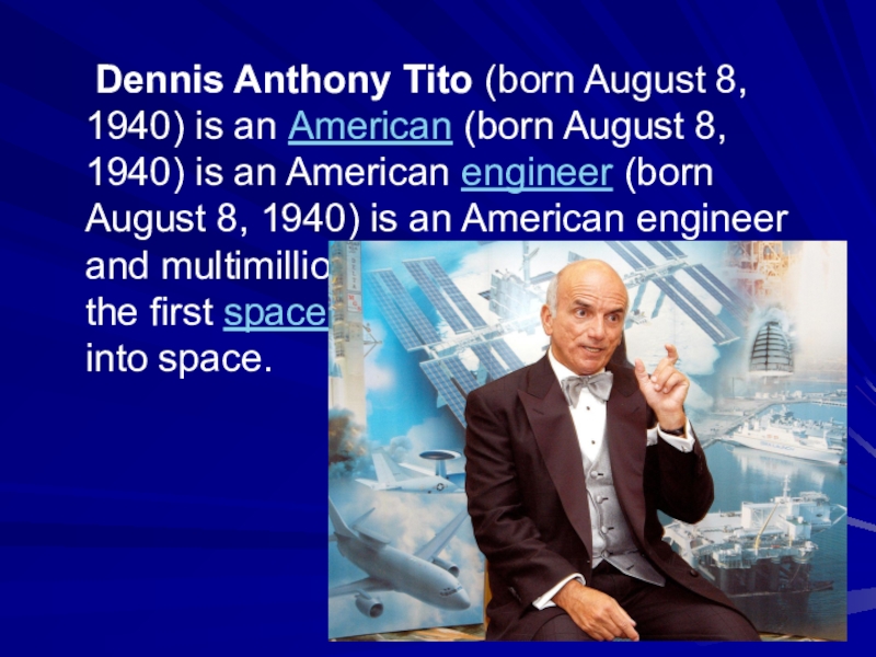 Слайд 8 Dennis Anthony Tito (born August 8, 1940) is an