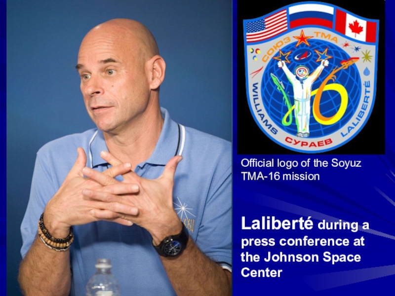 Слайд 25Laliberté during a press conference at the Johnson Space Center