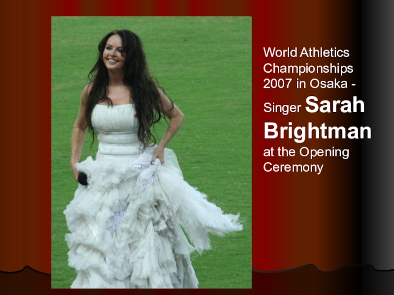 Слайд 26World Athletics Championships 2007 in Osaka - Singer Sarah Brightman at