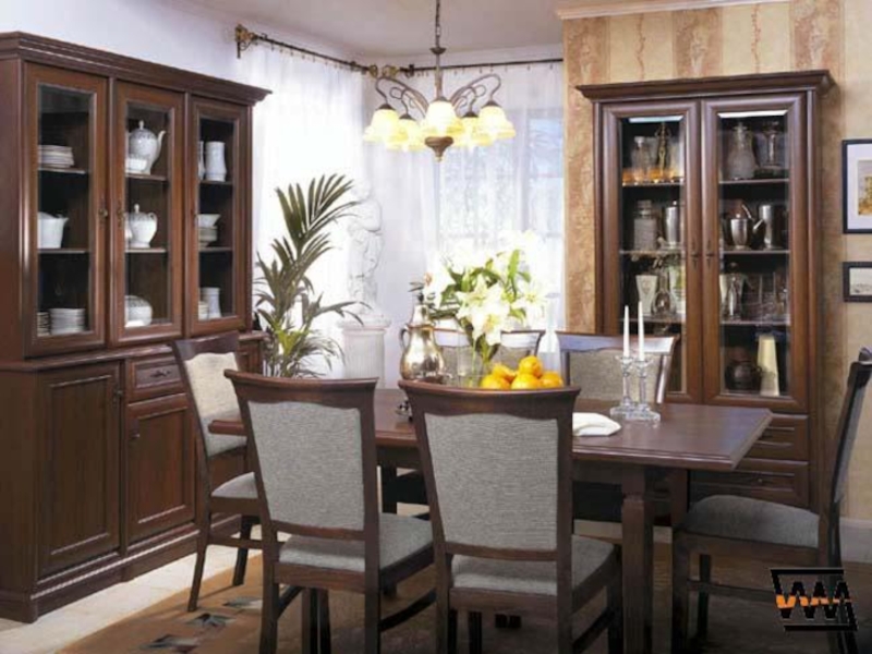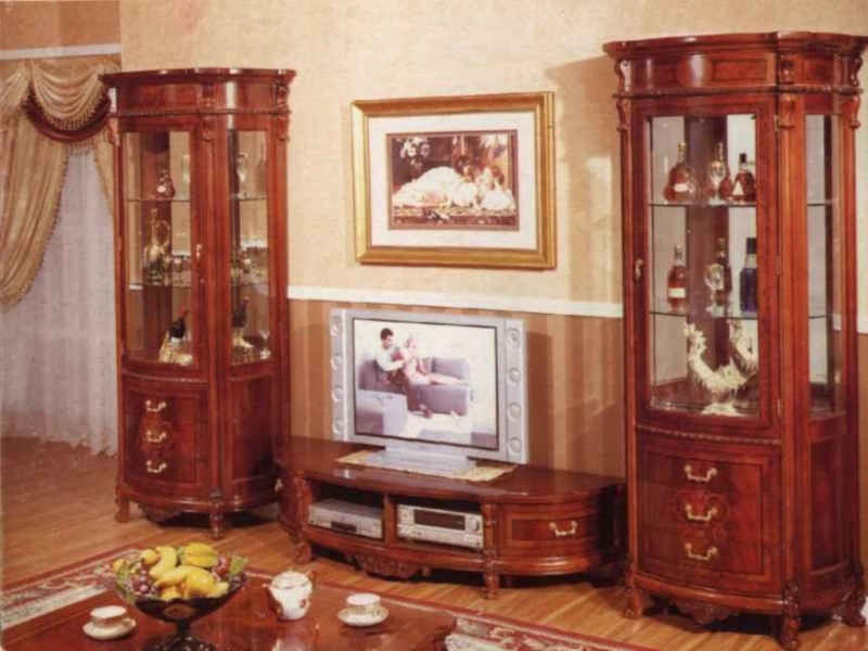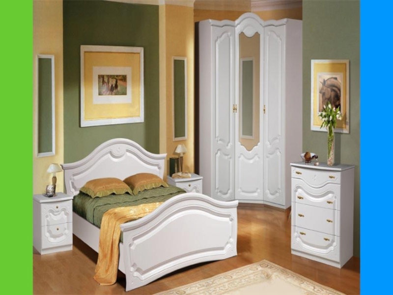 Слайд 65. There is a TV set, a wall-unit, some chairs and