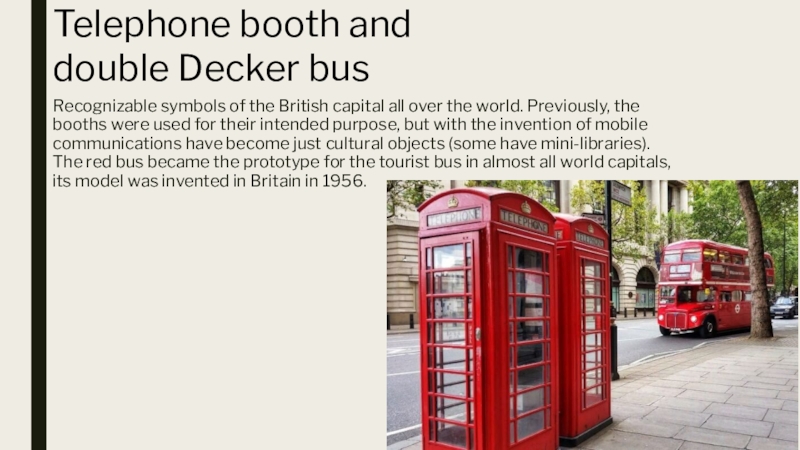 Слайд 16Recognizable symbols of the British capital all over the world. Previously,
