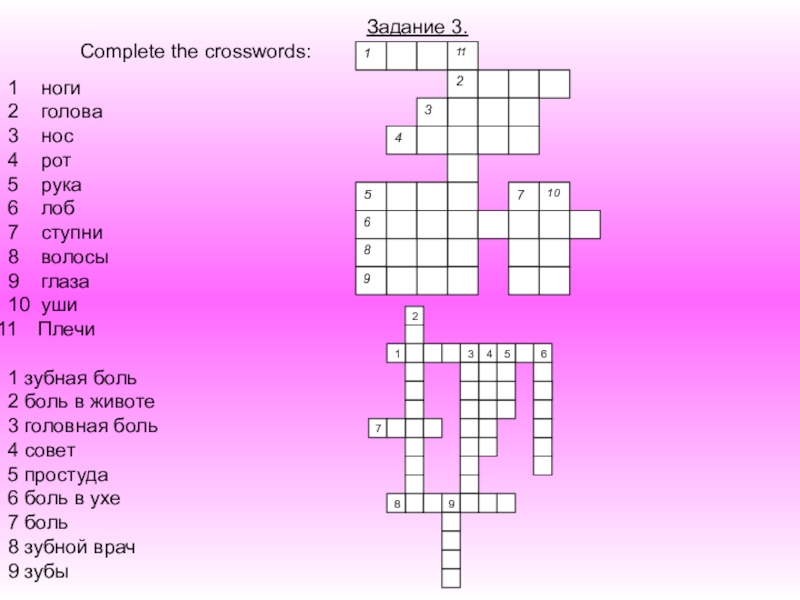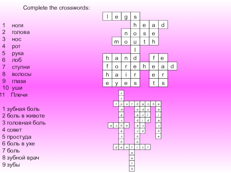 Учебная задача: контроль усвоения языкового материала и следующих грамматических тем: употребление модальных глаголов must, should, артикль с названиями болезней, Present, Past Simple Tenses, глагол to be в Past Simple Tenses, построение отрицательных и вопросительных предложений, использование выражений частности, потребление повелительного наклонения в связных высказываниях и использовании их диалогической и монологической речи.