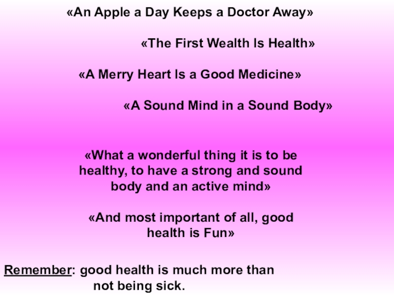 «Good health is a strong, energetic