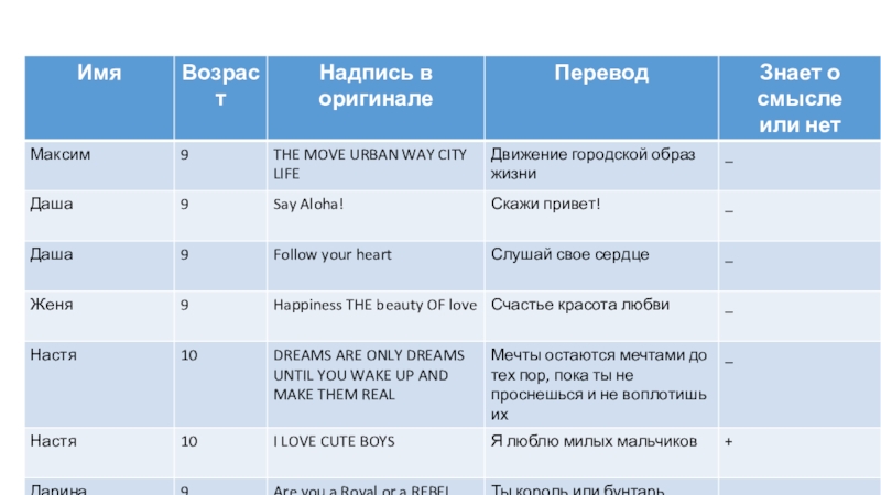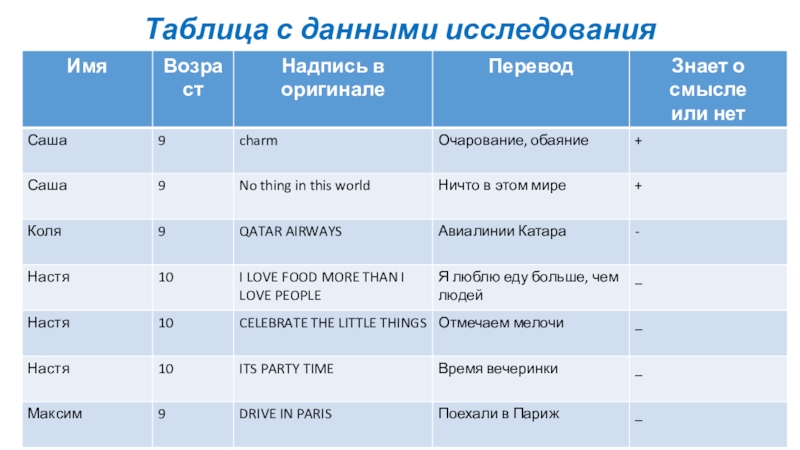 Сбор информации о знании смысла англоязычных надписей учащимися.