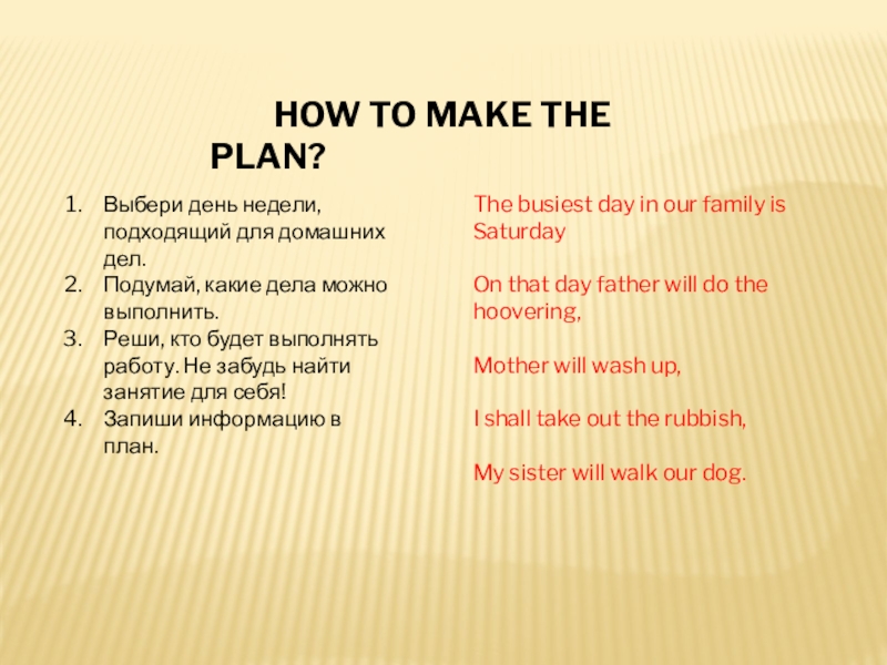 Реши, кто будет выполнять работу. Не забудь найти занятие для себя!