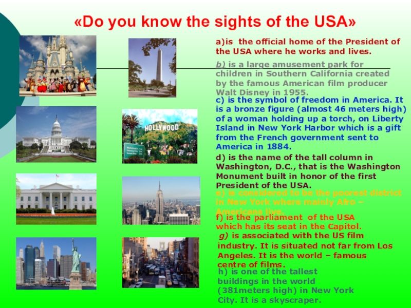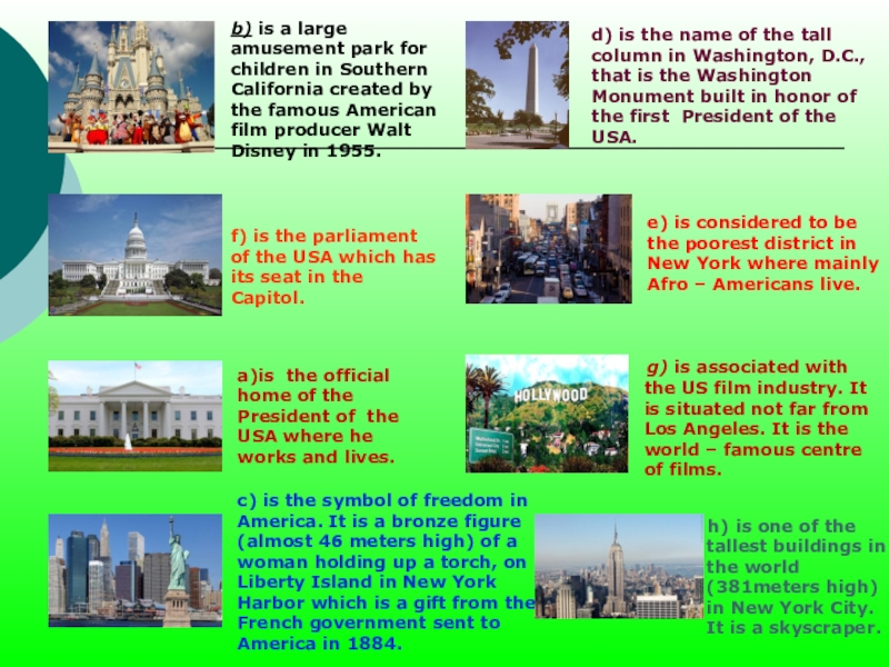 g) is associated with the US film industry. It is situated not far from Los Angeles. It is the world – famous centre of films.