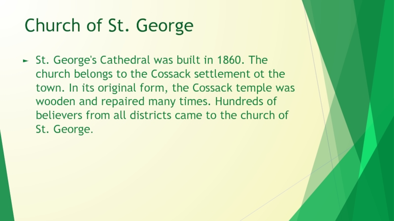 Church of St. GeorgeSt. George's Cathedral was built in 1860. The church belongs to the Cossack settlement