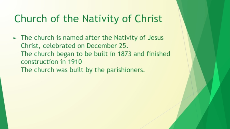 Church of the Nativity of ChristThe church is named after the Nativity of Jesus Christ, celebrated on December 25. The church began to be built in 1873 and finished construction in 1910 The church was built